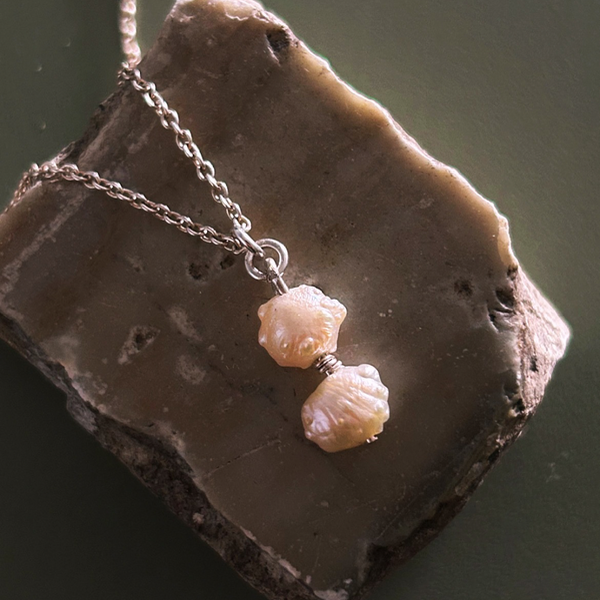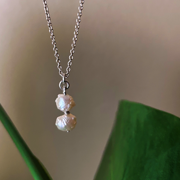 Colgante de plata con 2 perlas. Cadena de plata 925 de 50 cm.